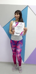 Сертифицированный инструктор ProJumping, В 2017 году прошла обучение в Красноярском региональном спортивной общественной организации "Федерации фитнеса-аэробики" по направлению групповых программ Стрейчингу, Классической аэробики, Силовым тренировкам, Степ-аэробики, Фитнес в гамаках.
